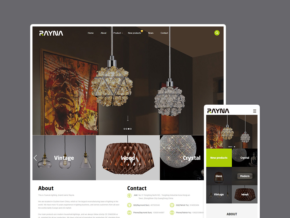 This is YuanJie lighting, brand name Rayna. We are located in Guzhen town China, which is f he largest mcenufacturing base of lighting in the world. We have more 15 years experience in lighting business, and serves customers from all over the world,mainly Europe and US market. Our main products are modern household lightings, and we always follow strictly CE EN60598 or UL siandard for all our production. We have a full set of procedure for production QC checking from one small screw to the final complete lighling, and every step is followed by special people. Our factory is working with many kinds of material, for example metal, stainless steel, glass, crystal, plastic, cement, wood, etc.